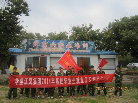 2014年7月6日-10日,華盛江泉集團2014屆大學(xué)生訓(xùn)練營成功舉行。本次報到大學(xué)生共21人,為磨煉大學(xué)生意志、激發(fā)大學(xué)生工作熱情、培養(yǎng)其團隊合作精神、促進大學(xué)生的快速成長,集團人力資源部制定了以軍訓(xùn)、入職培訓(xùn)、拓展訓(xùn)練為主要內(nèi)容的培養(yǎng)計劃。